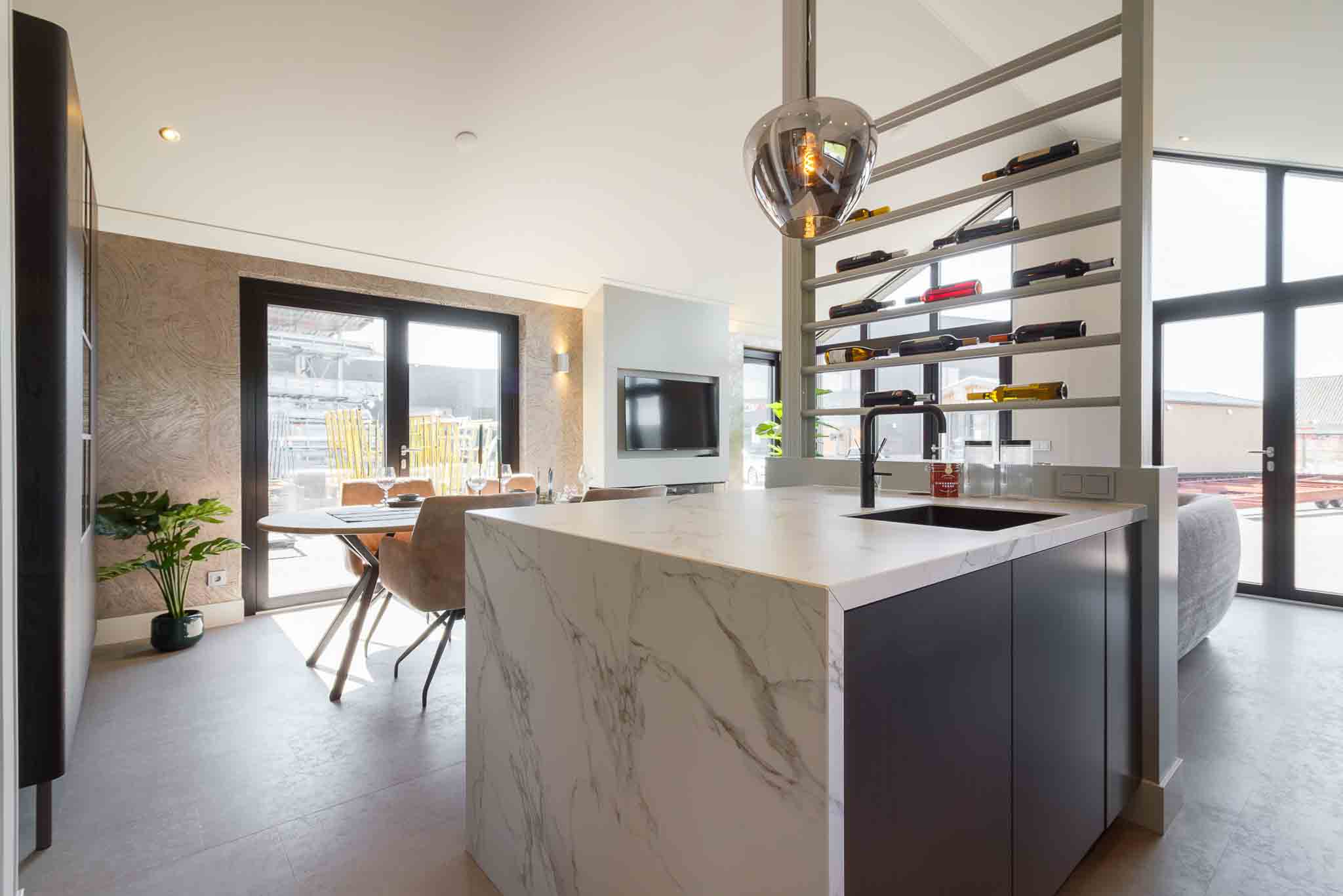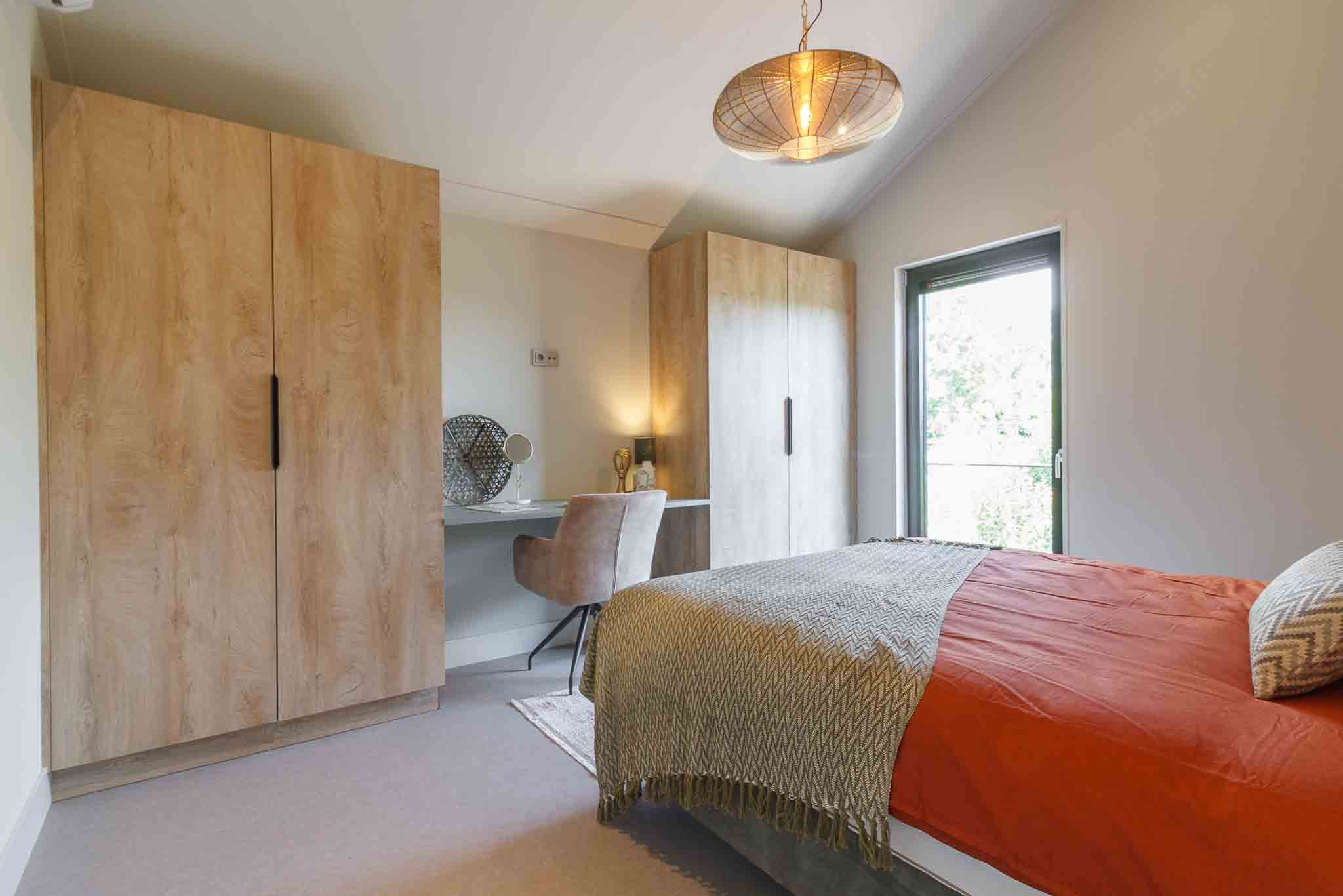 Het samenspel van het hoge plafond en de grote raampartijen maakt de Next Level 2.0 tot een uitzonderlijke mantelzorgwoning. Het hoge plafond creëert een visueel indrukwekkende ruimte, terwijl de grote raampartijen zorgen voor overvloedig natuurlijk licht in de woning. Dit versterkt niet alleen de schoonheid van de ruimte, maar heeft ook een positieve invloed op het welzijn van de bewoners. De lichtinval draagt bij aan een warme en uitnodigende sfeer, waardoor de woning aanvoelt als een echte thuisbasis.